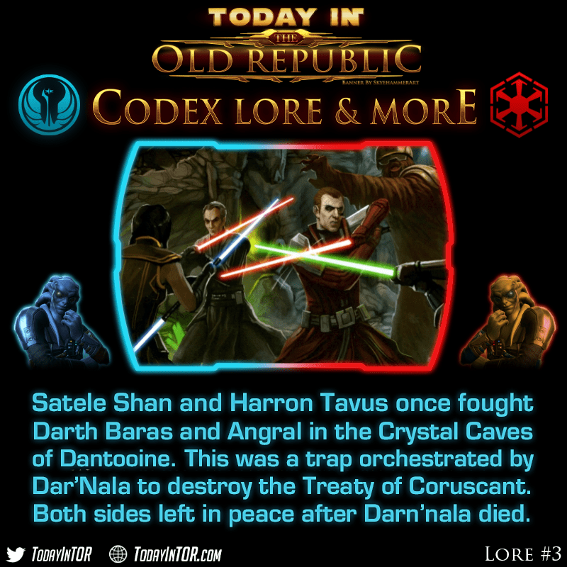 While this stoked the embers, it did not cause fire. Dar’Nala then pressed forward in her attempts to reignite the war by coercing Jedi Fortis Gall,Trooper Harron Tavus, and mind controlling a Wookiee named Dalborra that worked for the Sith Empire.