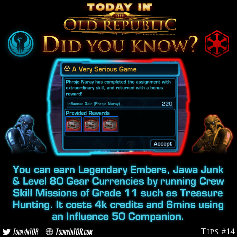 The caveat with the mission comes down to the fact that this lockbox does not guarantee a level 80 Upgrade Currency and may instead reward companion gifts or grade 11 crafting materials.
