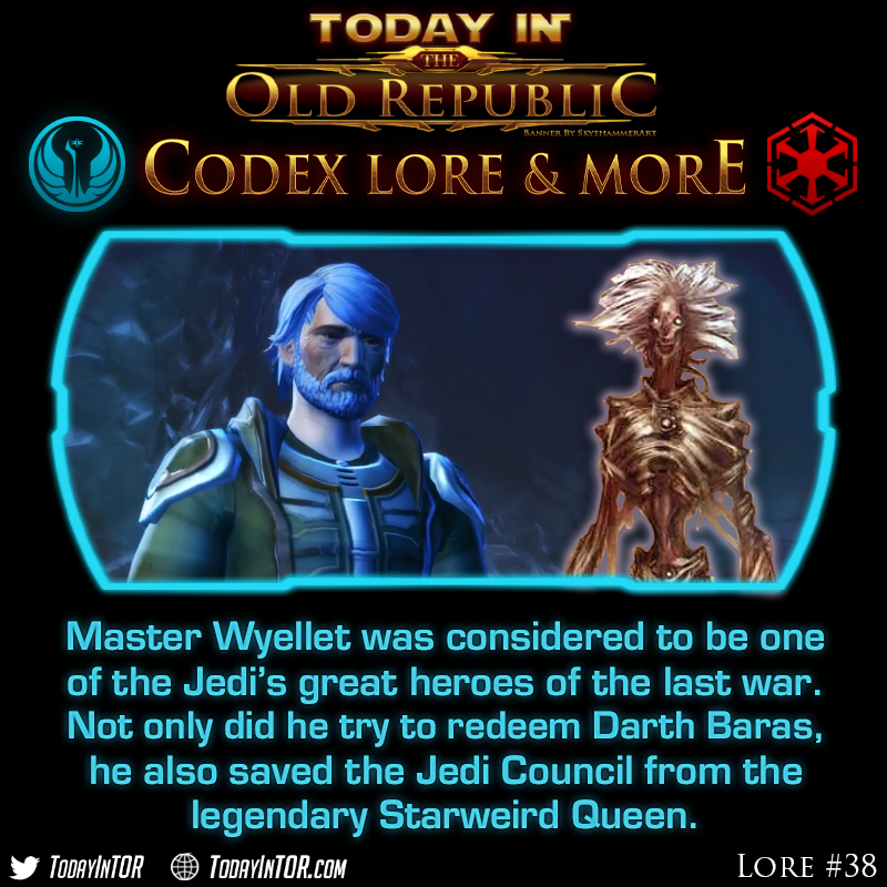 Jedi Master Wyellet is the Sith Warrior’s main antagonist on the planet Hoth, as Master Wyellet, and his apprentice Jedi Knight Xerender had Darth Baras’ old lightsaber in their possession. Wyellet was considered different to many of his Jedi peers, as he saught to only use the Force to preserve life, never as an aggressor, even though he was forced to prove himself in combat many times.