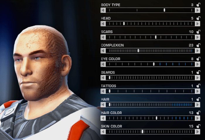 Based on Wrecker from the Bad Batch, includes character sliders, extra outfit pieces and more.