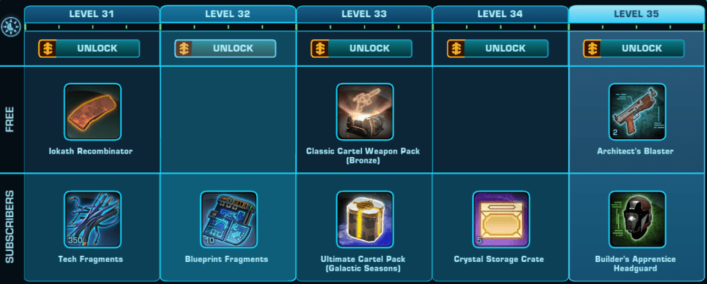 All Rewards available from the Free to Play and Subscriber track in SWTOR during Galactic Season 6 Building a Foundation.