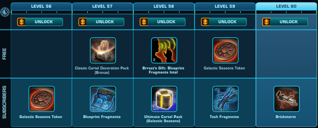 Logging in 4 Days a week will reward F2P and Preferred players with 4 bonus Galactic Season Points every week that a Galactic Season is active. Subscribers earn an extra 4 points each week.