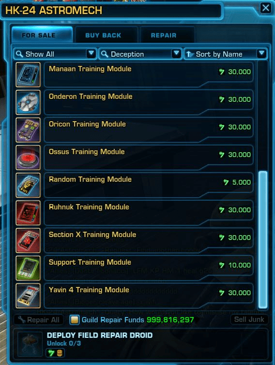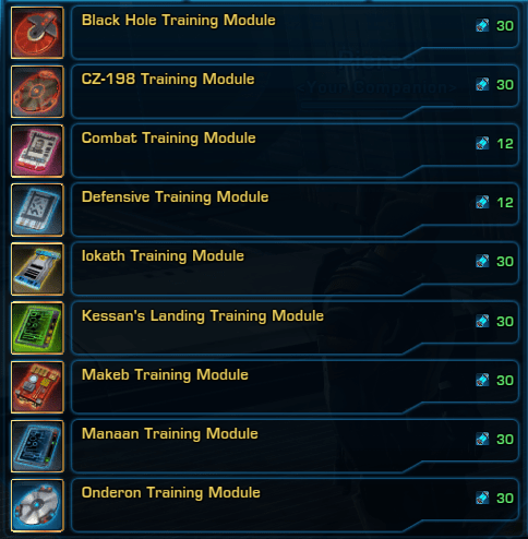 If you are low on training modules or need modules for both a specfic role or a specific Daily Area, you can go to HK-24 inside Lane’s Lab on Ruhnuk and purchase training modules.