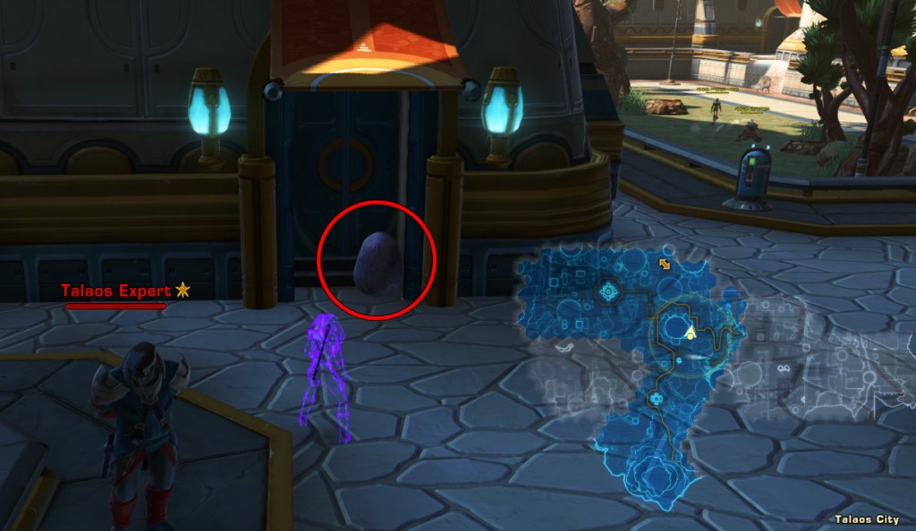 Eggs at Talaos City on Makeb are most commonly found on the sides of staircases, on doorways, underneath rubble and inside fountains and pools.