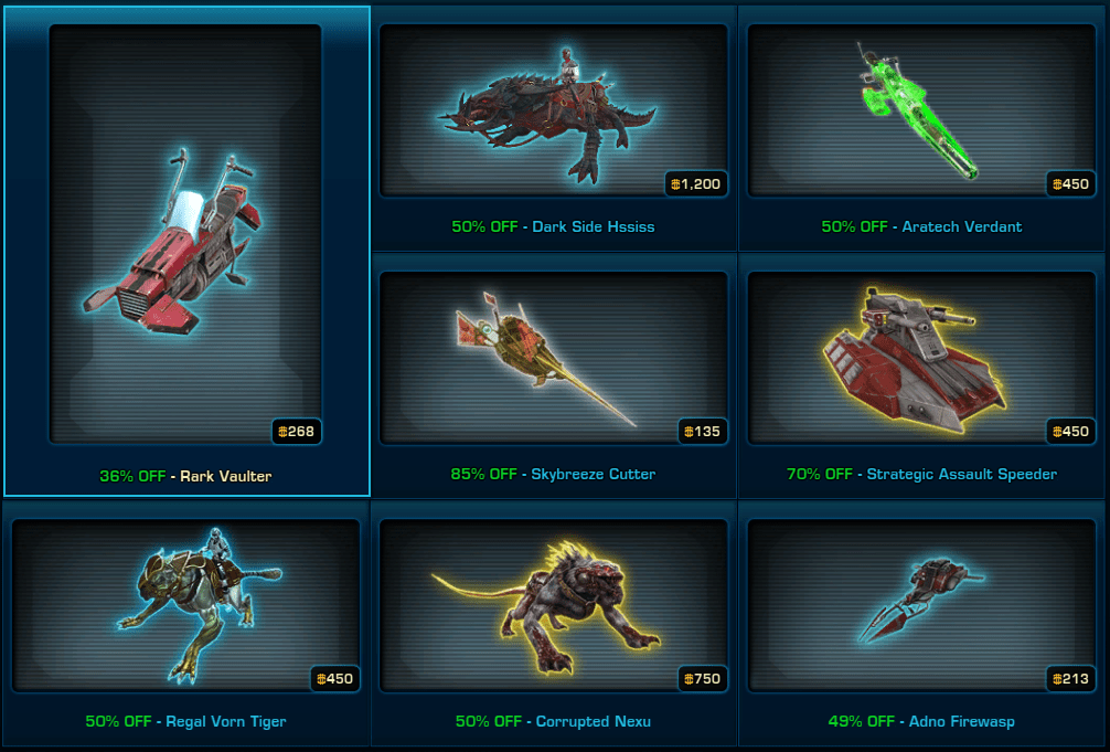 This is an incredibly rare Halloween themed Cartel Market mount that has not been easily accessible sicne 2016. It has turned up sporadically across the last few months on the Cartel Market but is still incredibly rare, usually selling for hundreds of millions on the GTN.