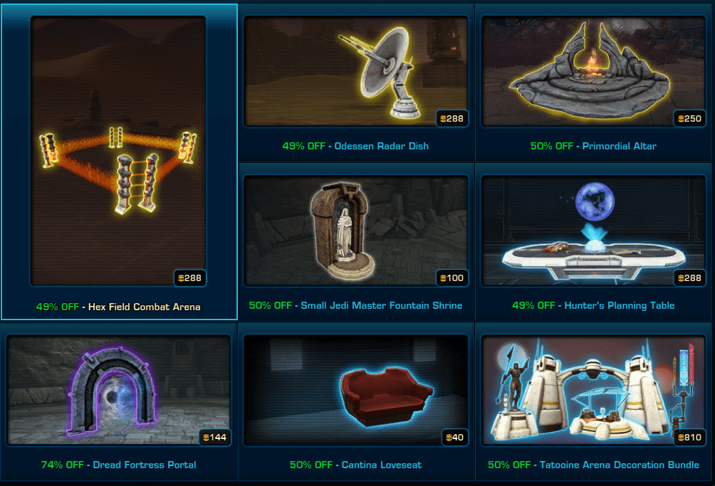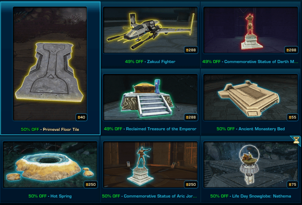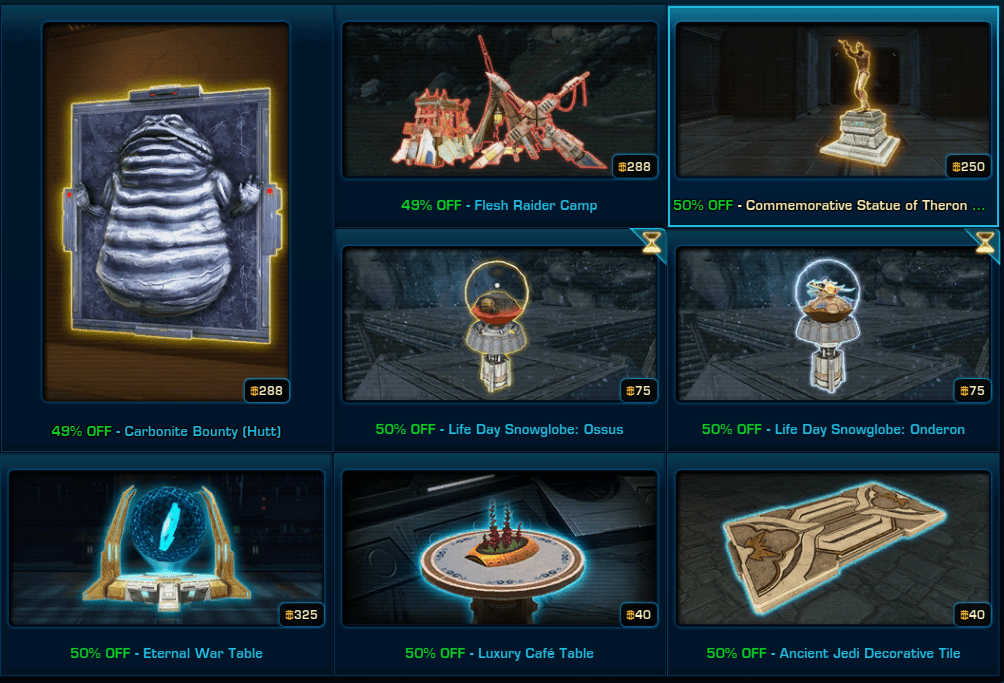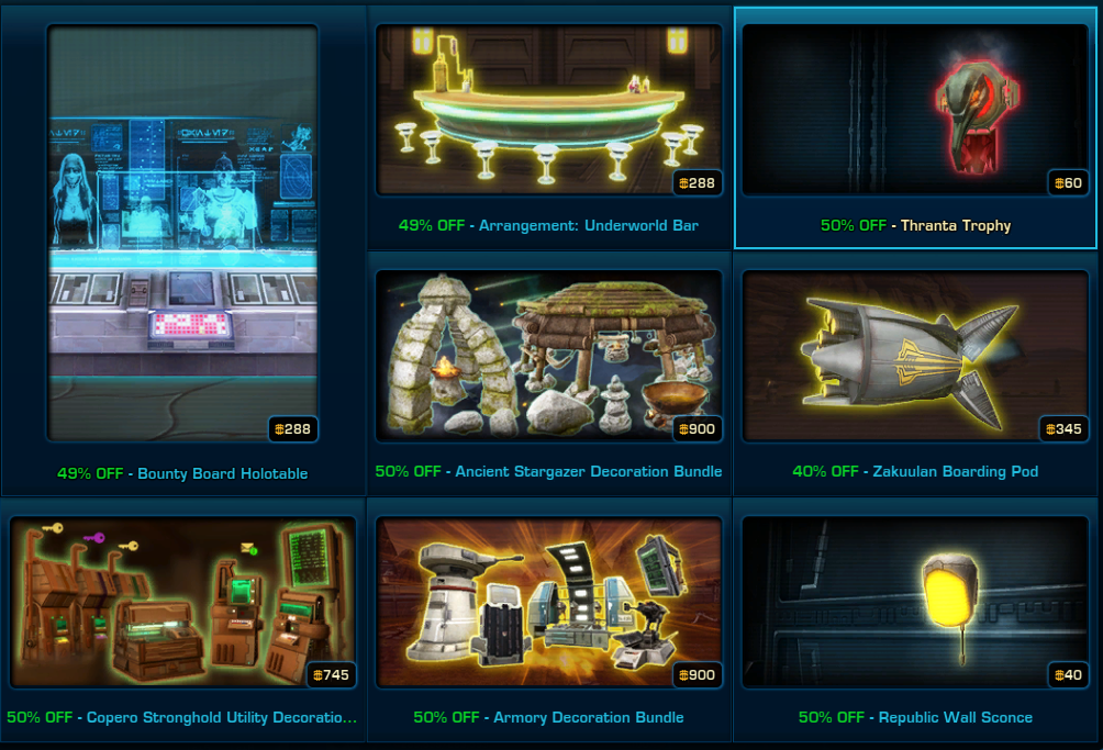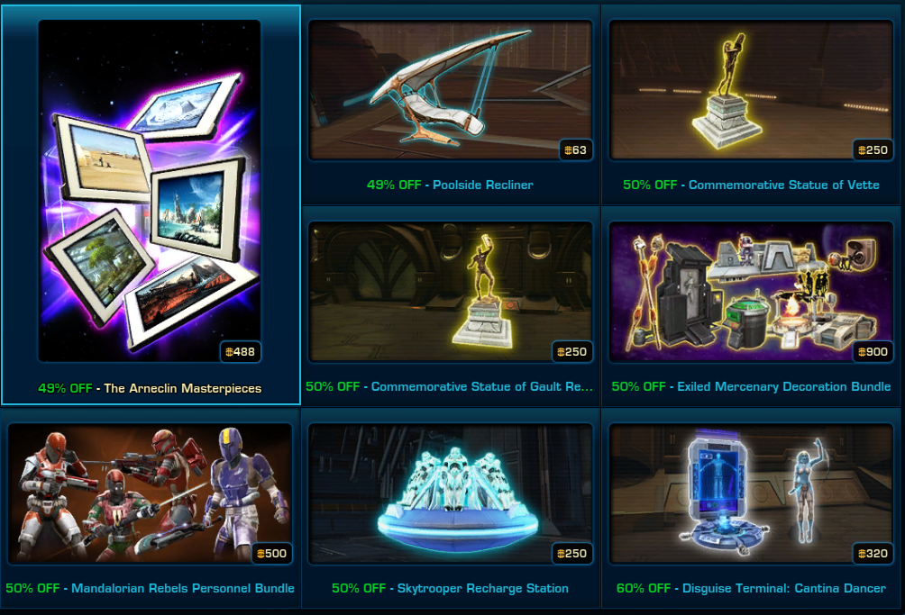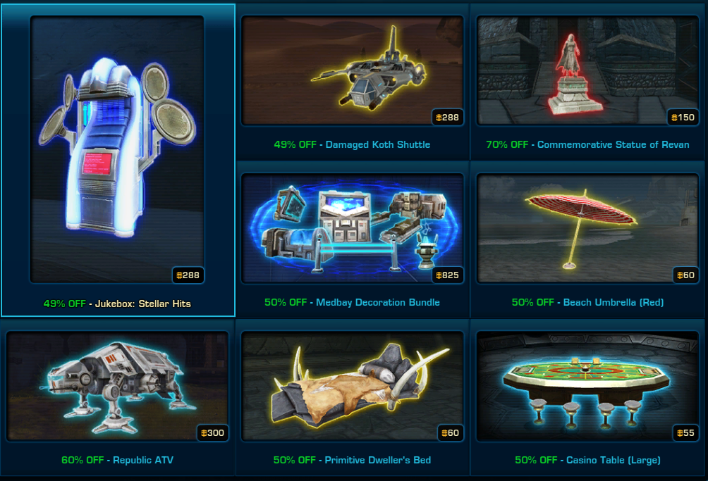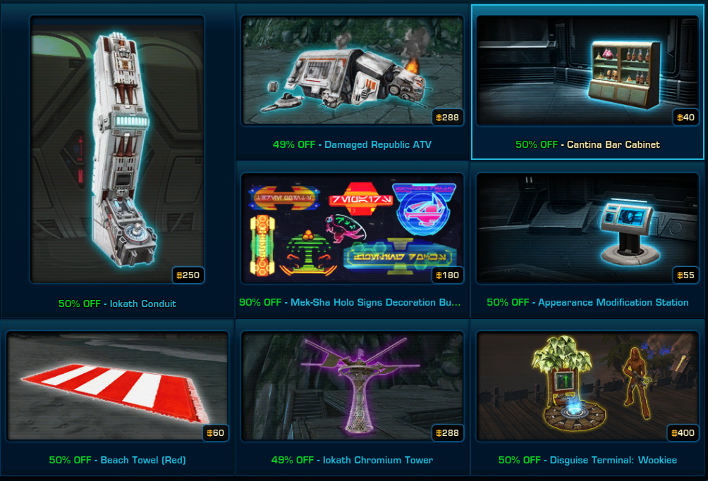 Star Wars the Old Republic is holding a mega Sale on many Cartel Market items in game on July 2024.