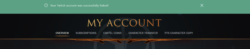 Once you have linked the two accounts together, your SWTOR account homepage should show this green bar.