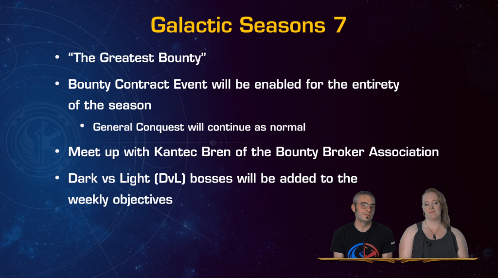In 7.5.1 Players of both Factions will be able unlock in Galactic Season 7: The Greatest Bounty. The Bounty Hunting Event (BBA) Will run for the entirety of the Galactic Season. Players will be able to meet a new story character to run and find special bounties in the galactic season.