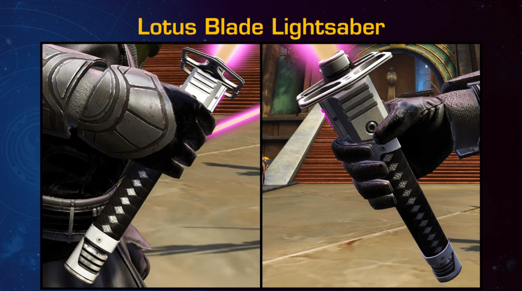 The Lotus Blade and Burning Embers Lightsabers (and dualsabers) are anime inspired Katana-hilted Lightsabers coming to SWTOR.