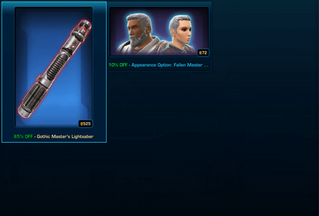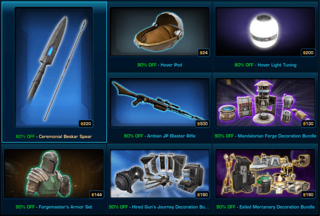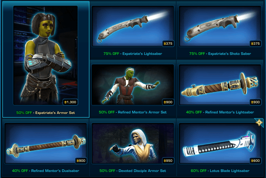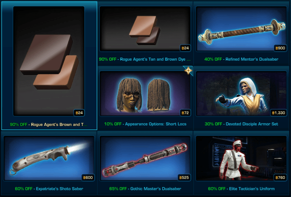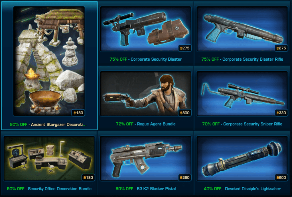 Star Wars the Old Republic is holding a mega Sale on many Cartel Market items in game on September 2024.