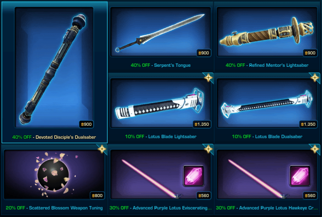 Many items have been discounted between 50% and 90% off in SWTOR. The sale started on the 17th of September and lasts until the 24th of September???