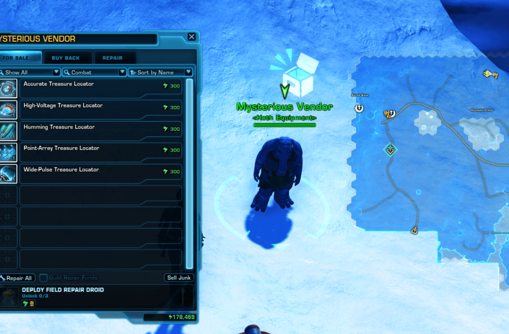 • Quality Product – Snow Grift: Purchase and used every incredible treasure locator the Mysterious Vendor on Hoth has to offer:
