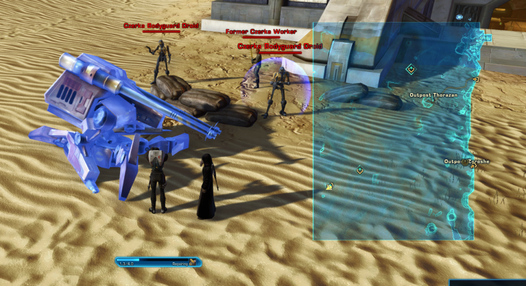 - Bots Rush – Czerka Sabotage: Complete the following Dynamic Encounters while using the temporary Czerka Droid companion from the Czerka Sabotage Dynamic Encounter: