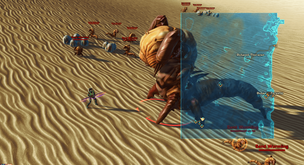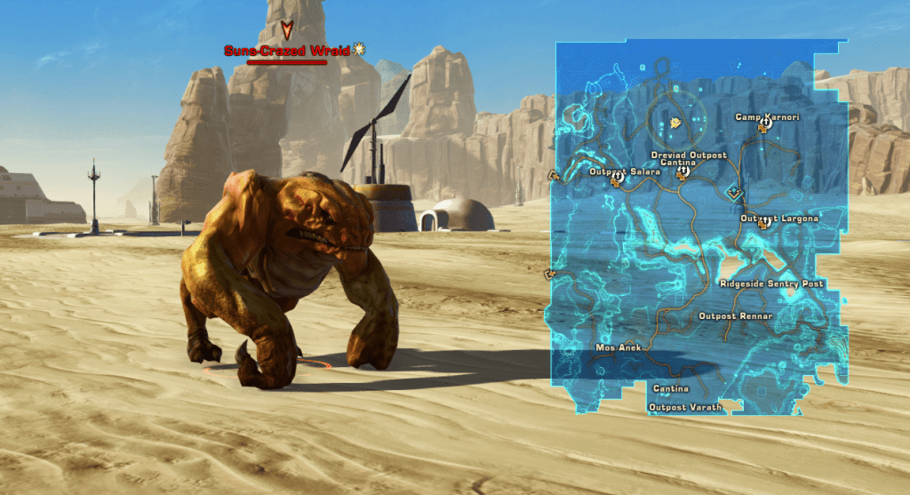 - Hungry Little Guys – Brooding Season: Find the Dewback Corpses around the Dynamic Encounter edge and then throw the food at the baby ‘yellow’ nameplate Wormlets in the sand to ‘Feed’ 3 Sand Wormlings.