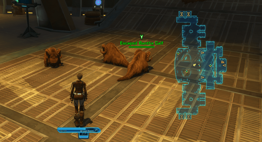 Achievement – Wranglin’ Pro – Wrangle 3 Bantha Calves within 10 seconds before you click the container.