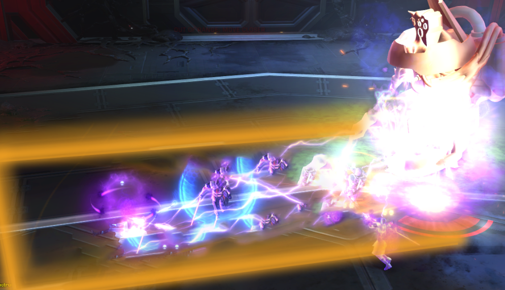 In Story Mode: at least one player needs to stand inside of the Orange Circle before the timer runs out. XR-53 will then spawn a Powerful Construct droid which must be killed by all DPS before you start fighting the Boss agian.