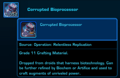 When you complete the Operation, make sure to loot your Personal Corrupted Bioprocessors (1-4) and Turn-In the Relentless Replication quest to recieve the other 20 Corrupted Bioprocessors.