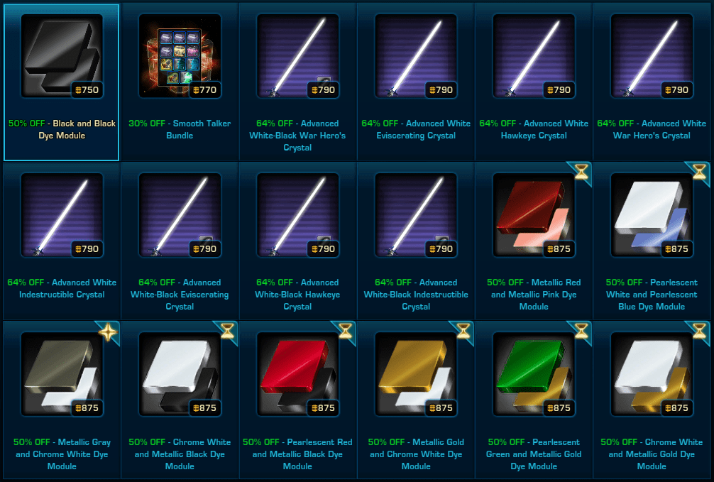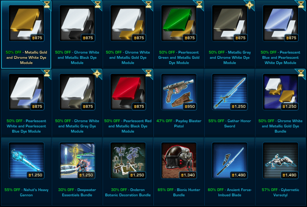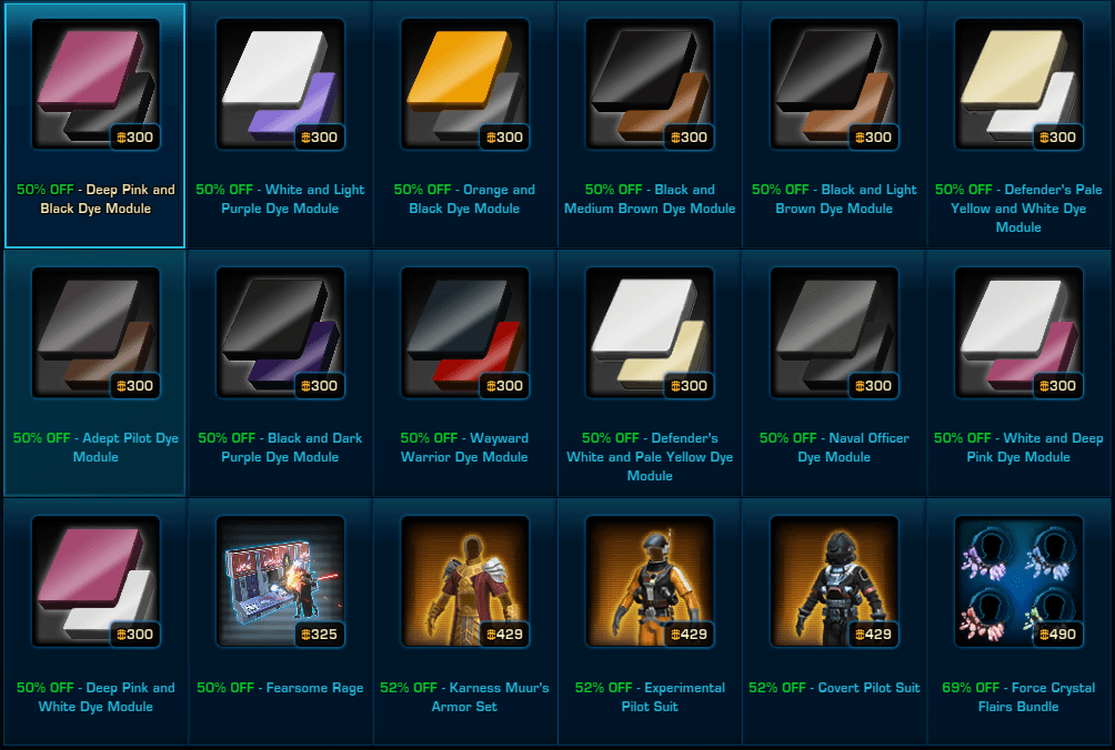 Many items have been discounted between 50% and 90% off in SWTOR. The sale started on the 25th of January 2025 and have extended into February 2025.