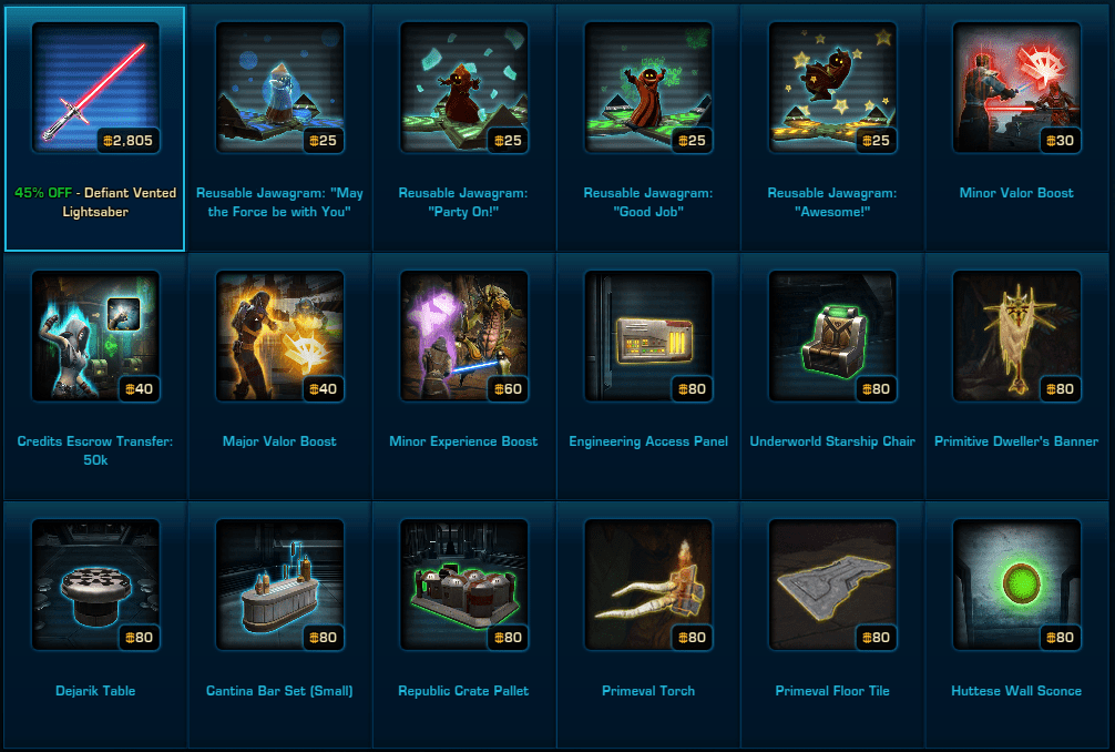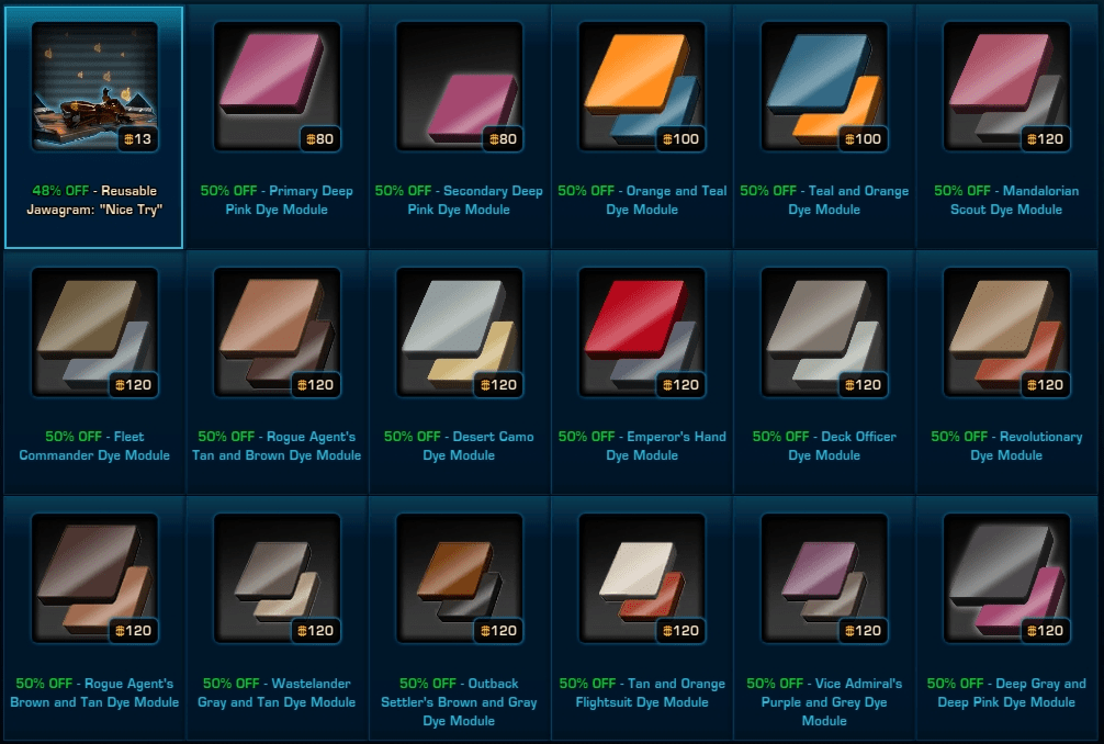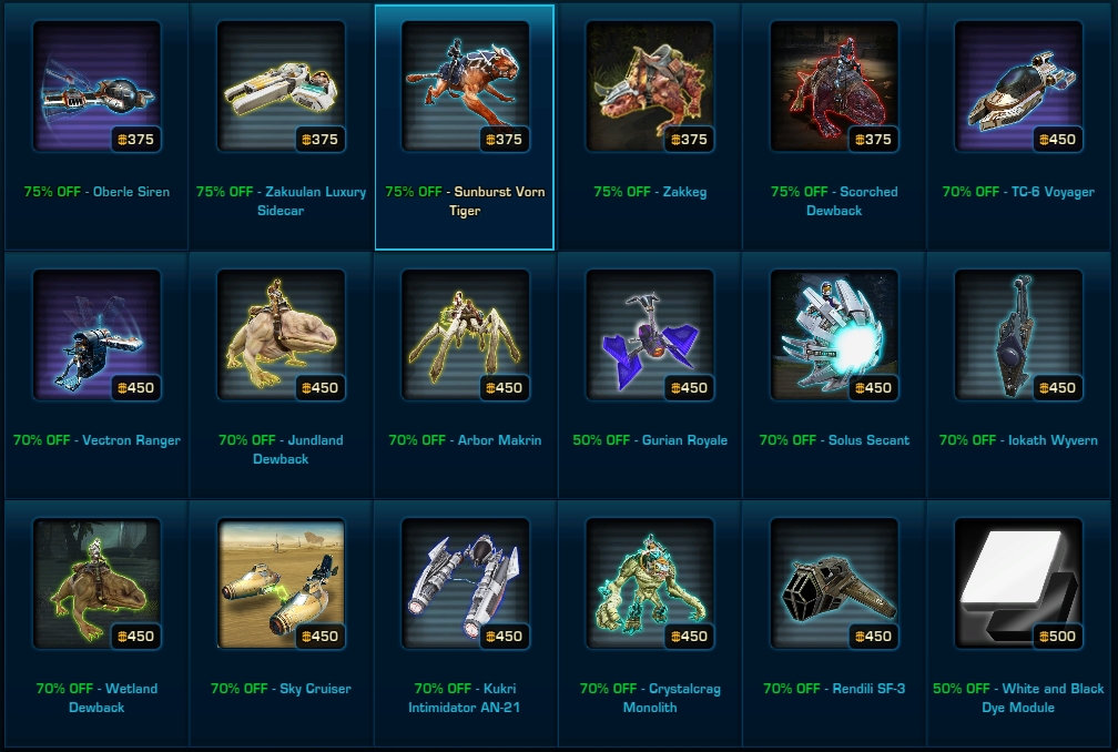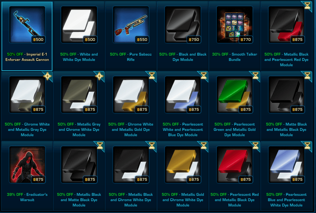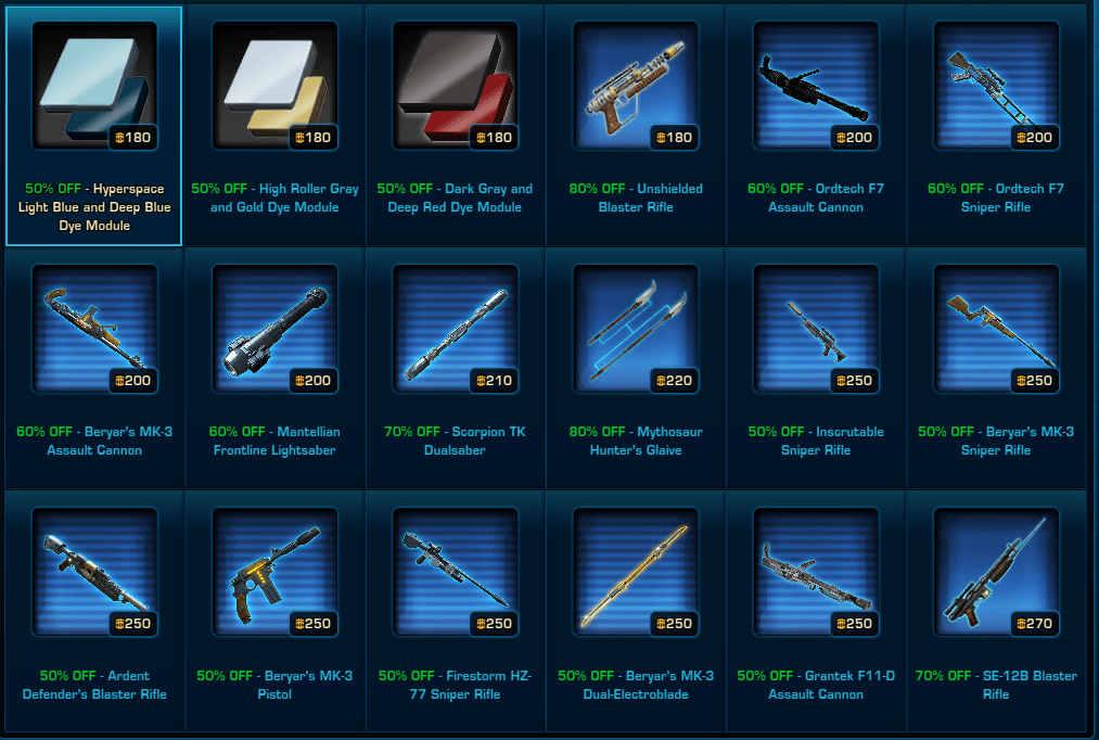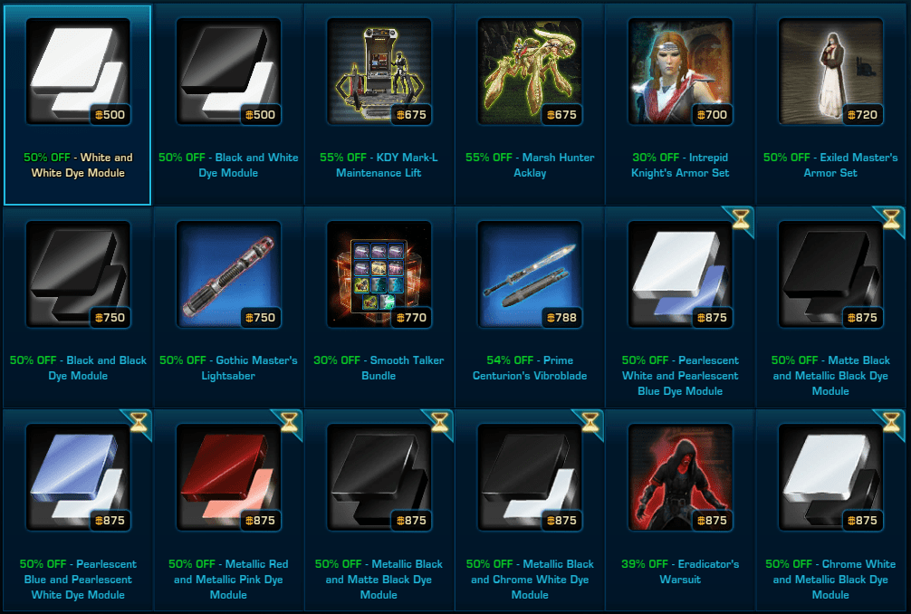 Star Wars the Old Republic is holding a mega Sale on many Cartel Market items in game on March 2025.