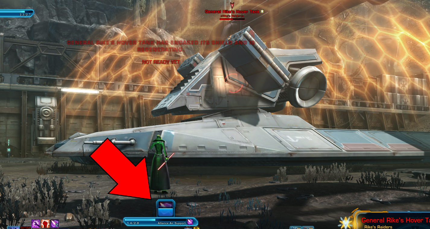 - When the Hover Tank shields itself, any member of your Group needs to use the Activate Air Support hotbar ability (Pictured above).