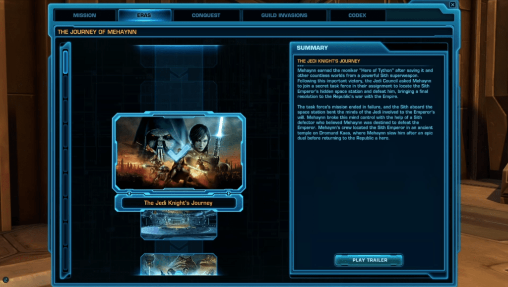 7.6(7) Master’s Engima Story: Assuming the trailer is accurate to the unreleased story content, it is likely that the footage depicting a Player Character + Lana Beniko on Ilum AND the cutscene showing Darth Malgus attacking Hidden Chain on Tatooine takes place during this time.