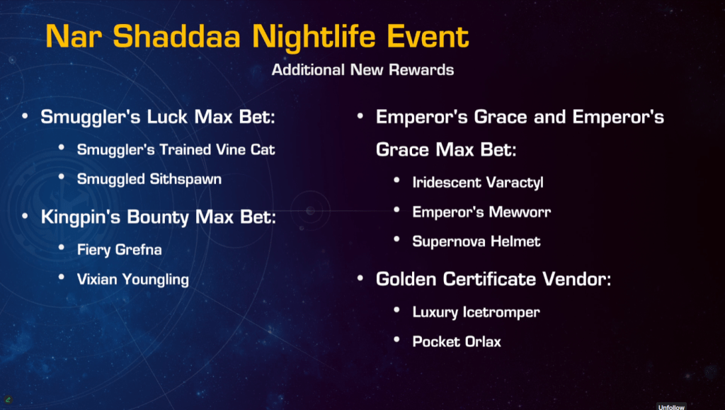 The Naboo Type-C Speeder Mount is a Mandalorian Season 3 inspired Mount that is available to all Subscriber players that log in between April 17th at 12pm CT / 5pm UTC and May 23rd.