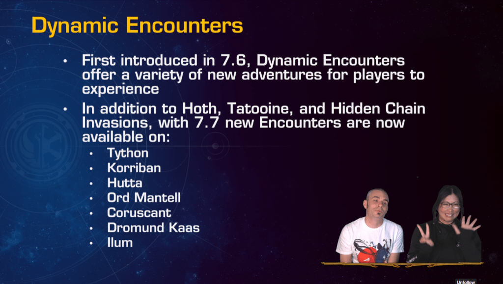 Dynamic Encounters are coming to 7 planets in SWTOR. The largest planets with encounters are the capital worlds (Coruscant and DK).