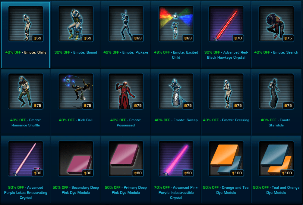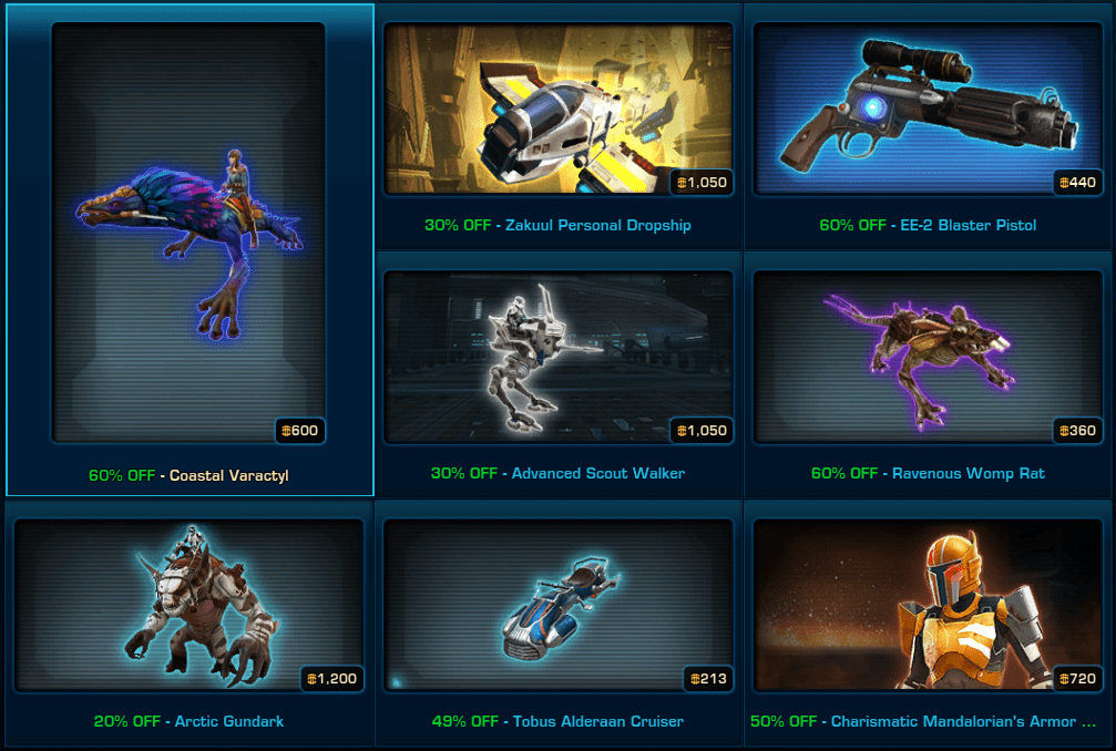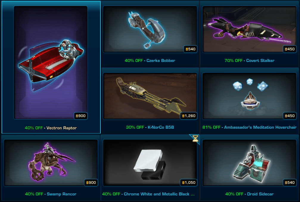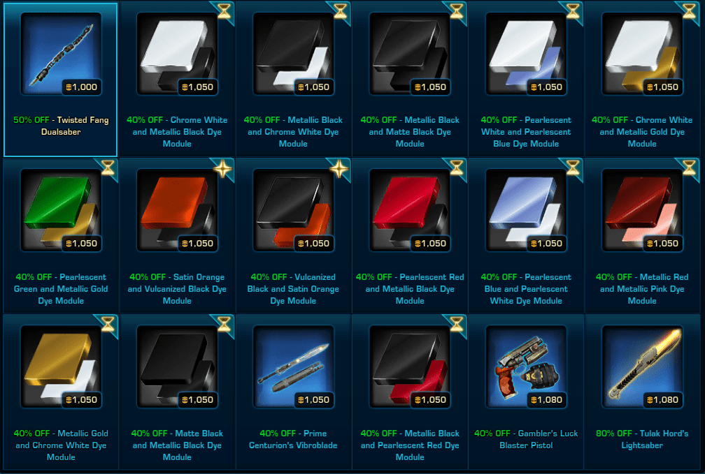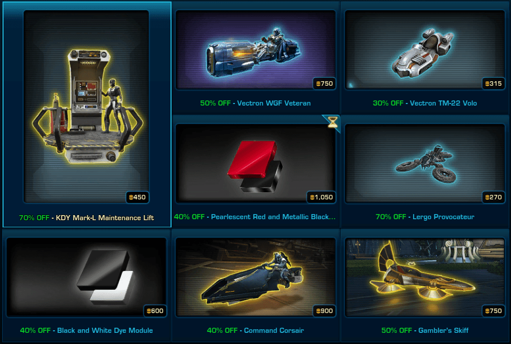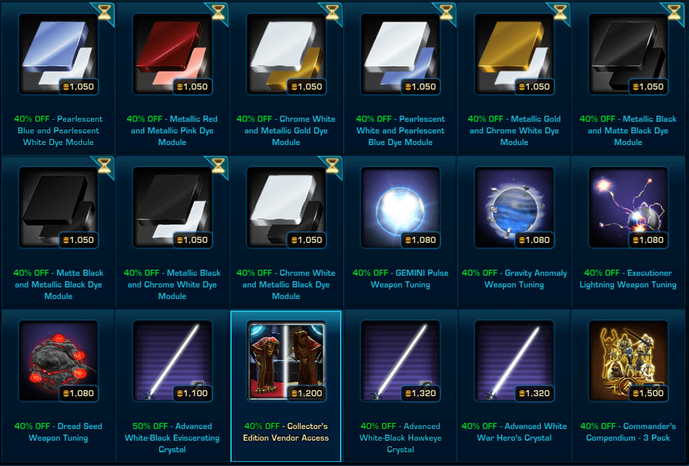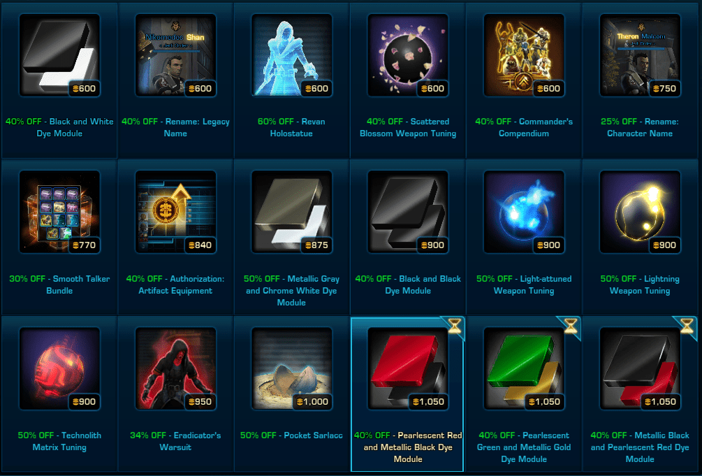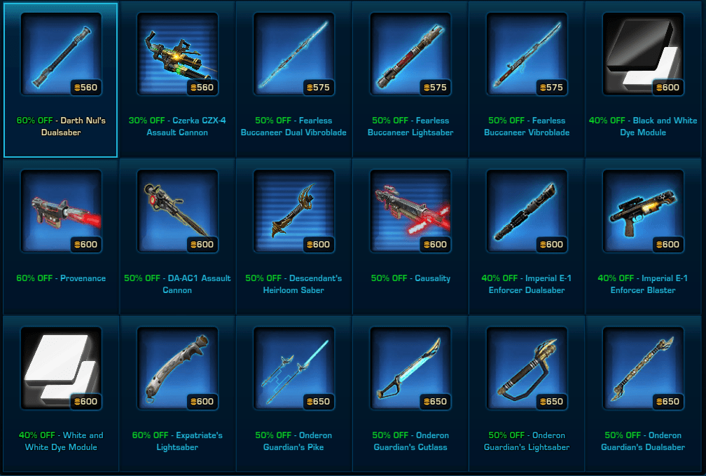 Every special available in the SWTOR Sale on the Cartel Market in game on September 2025.