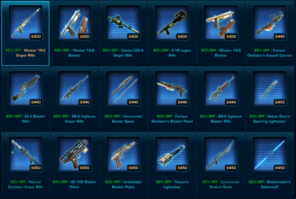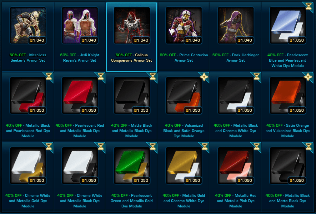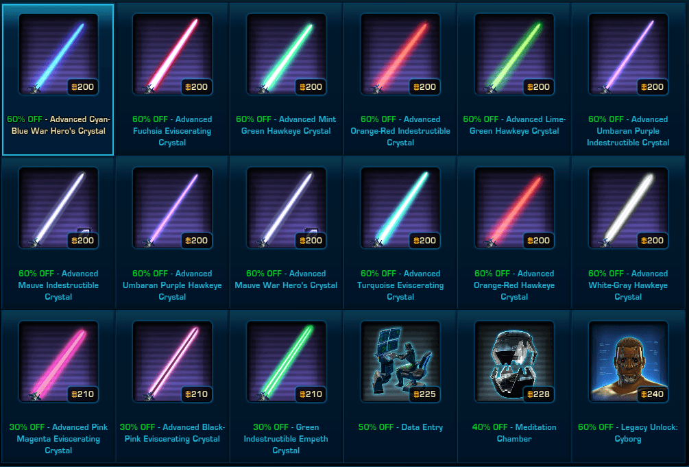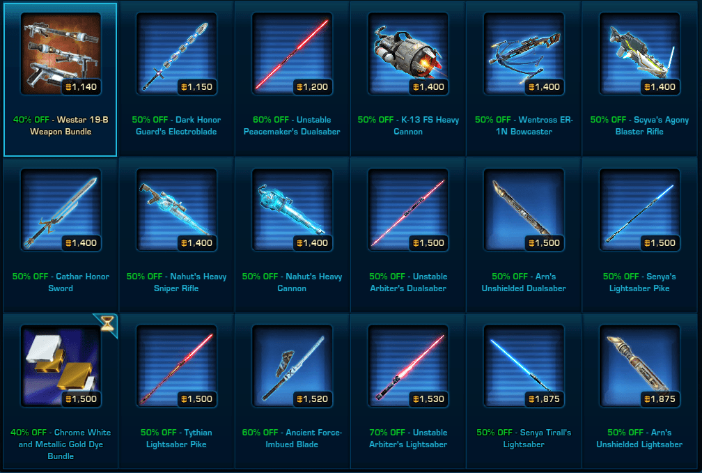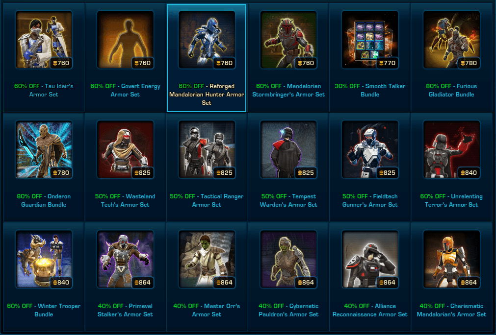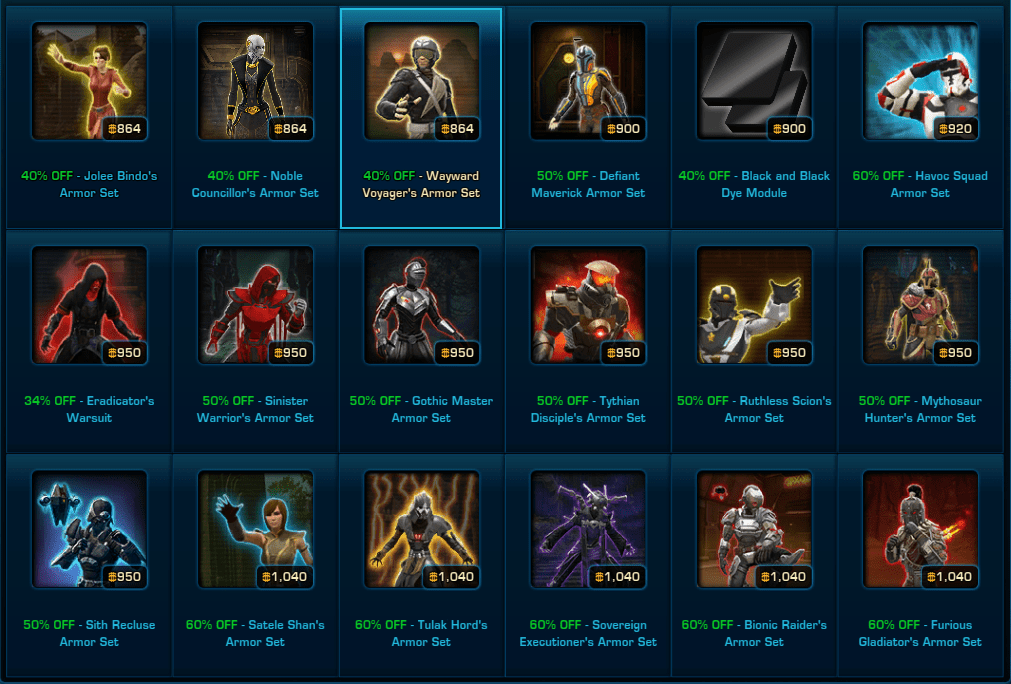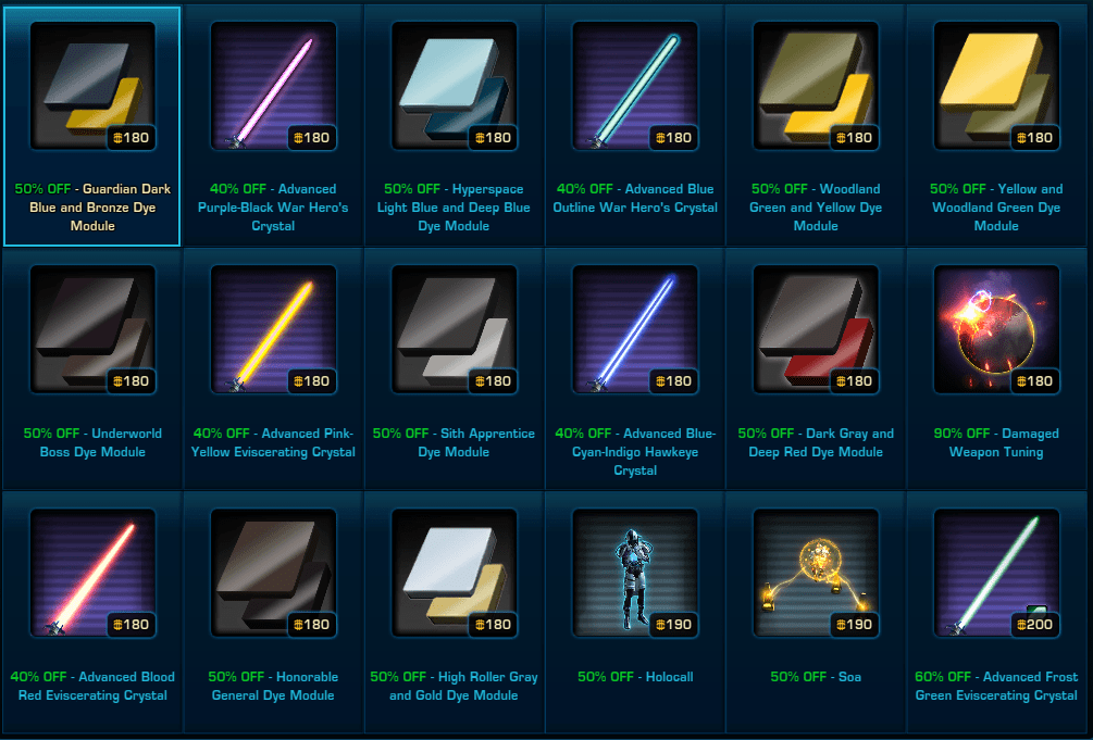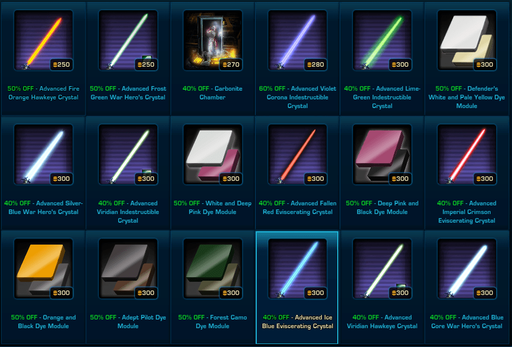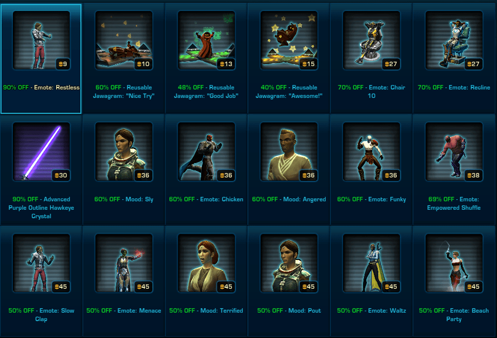 Every special available in the SWTOR Sale on the Cartel Market in game on September 2025.