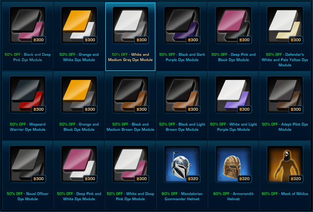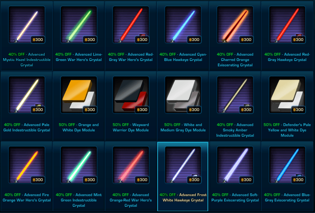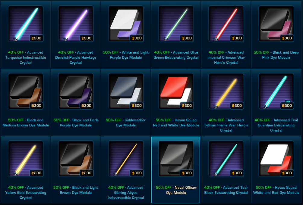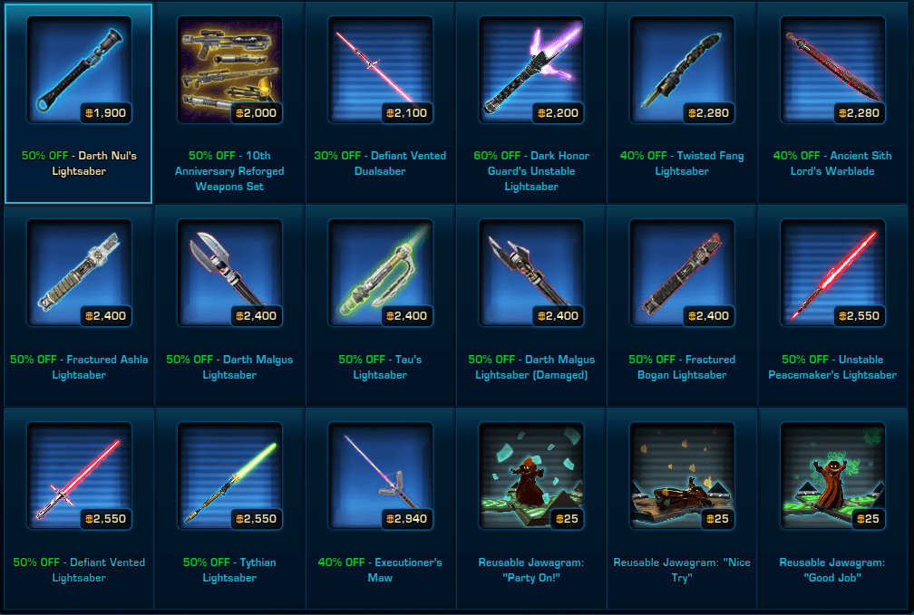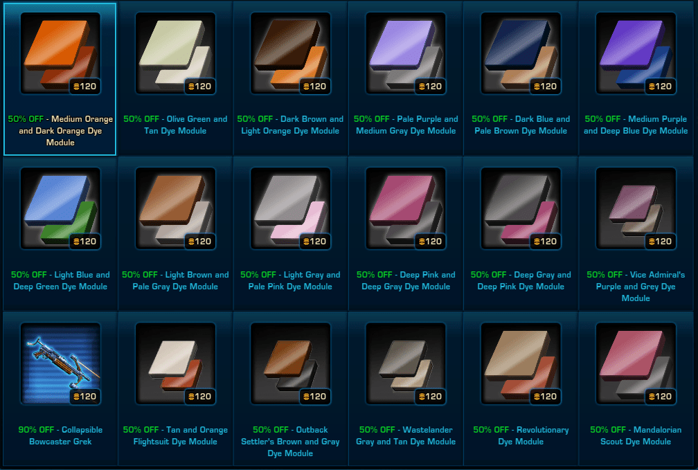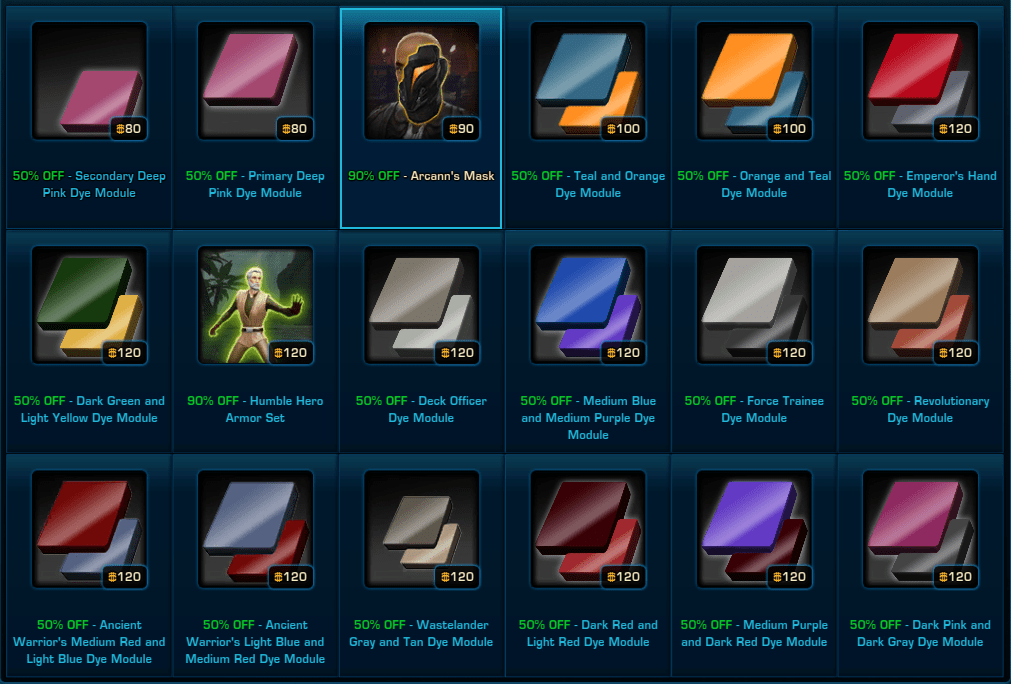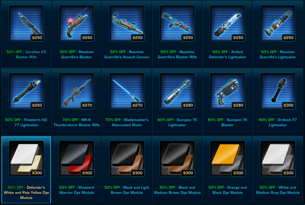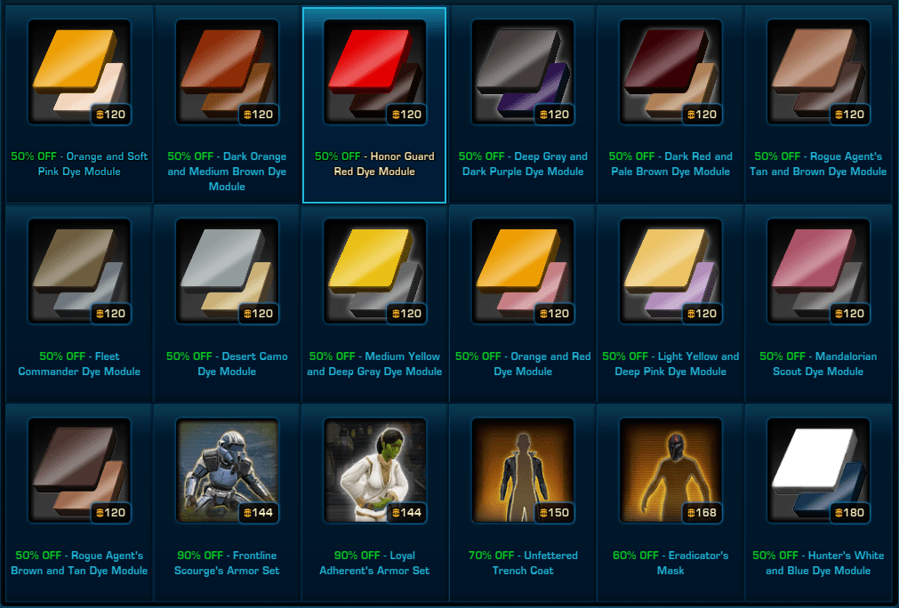 Every special available in the SWTOR Sale on the Cartel Market in game on September 2025.
