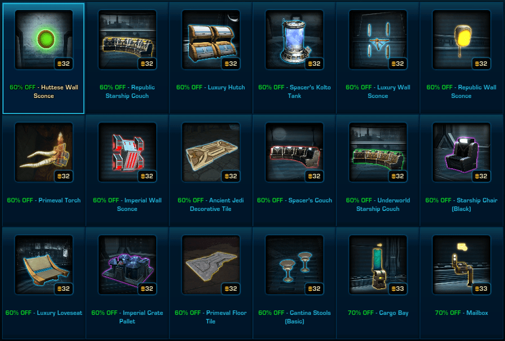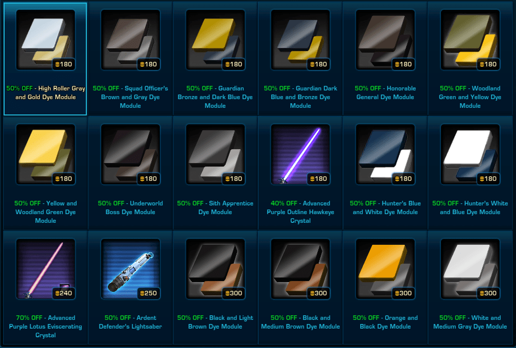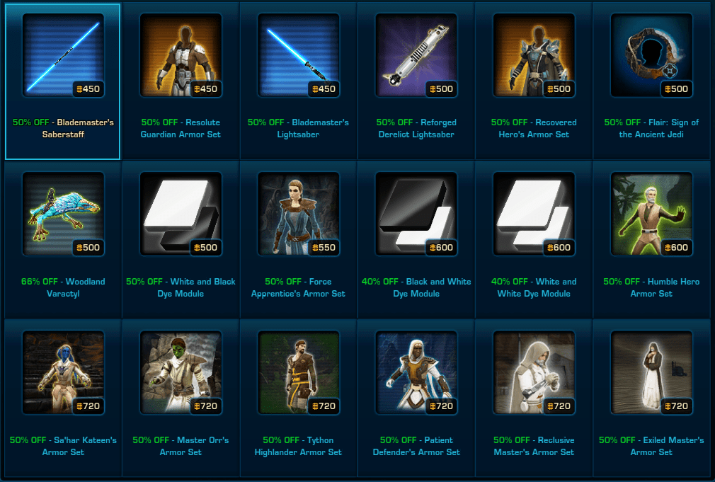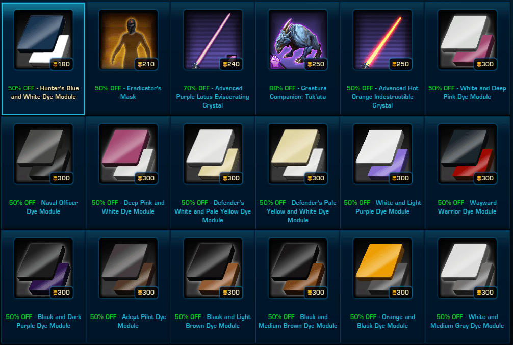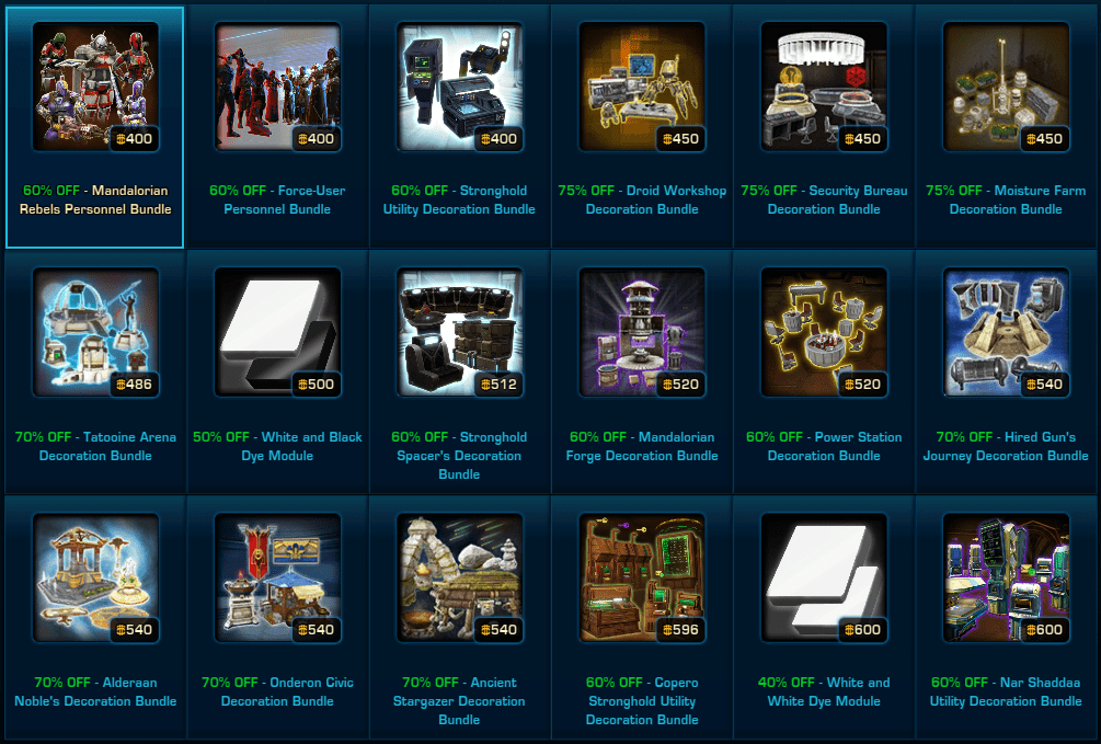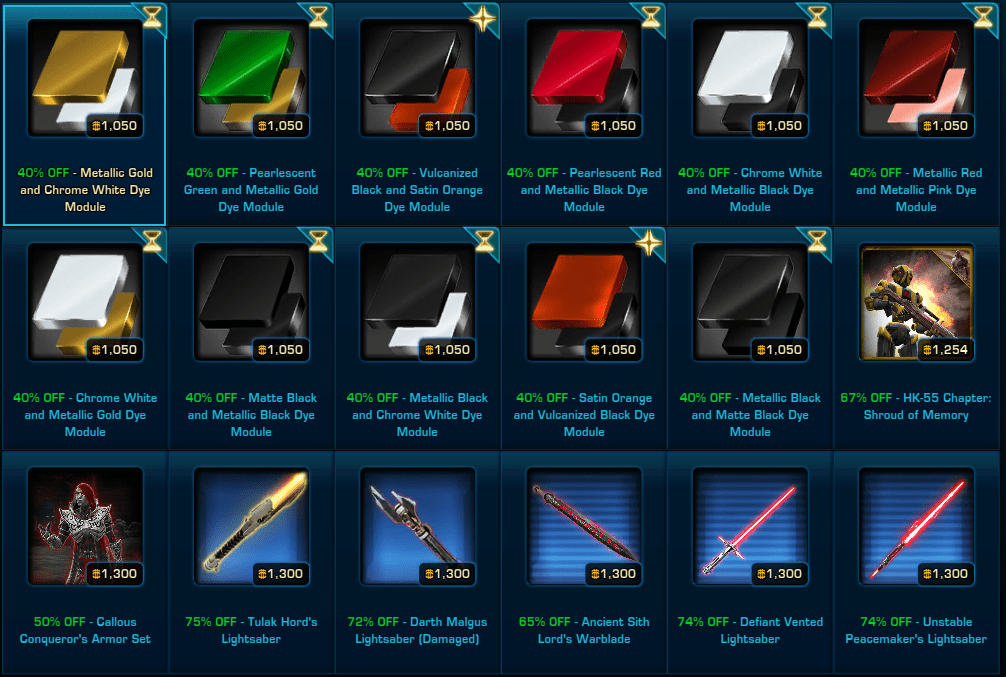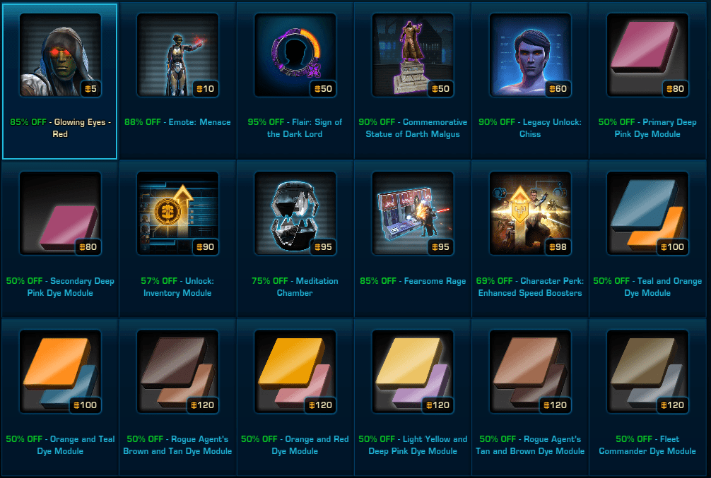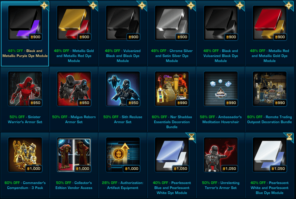 Every special available in the SWTOR Sale on the Cartel Market in game on November 2025.
