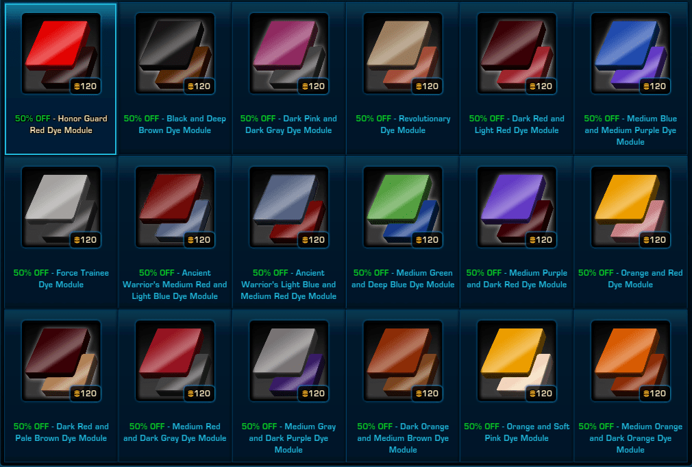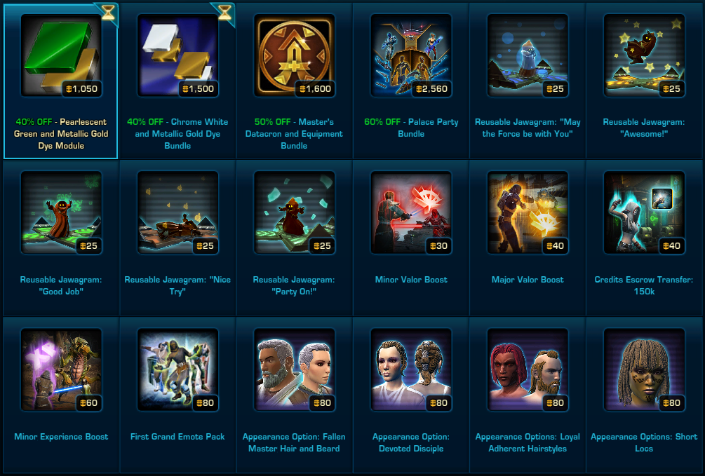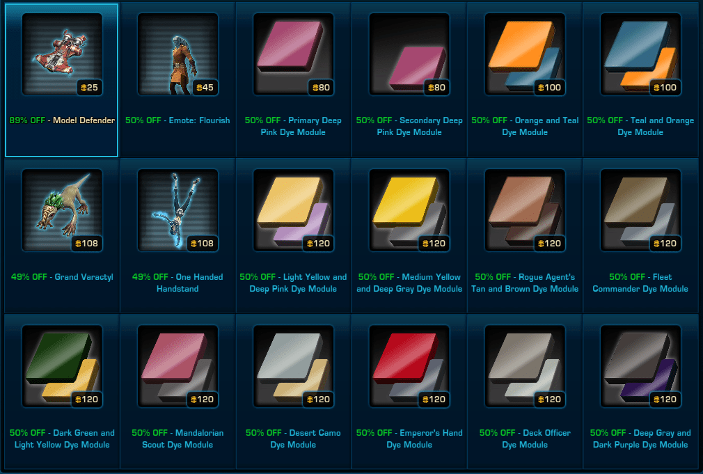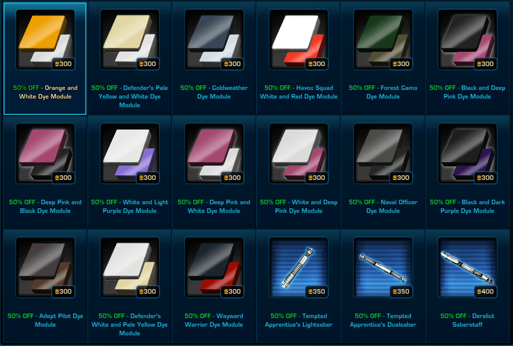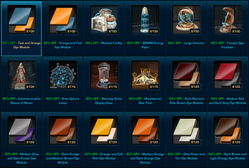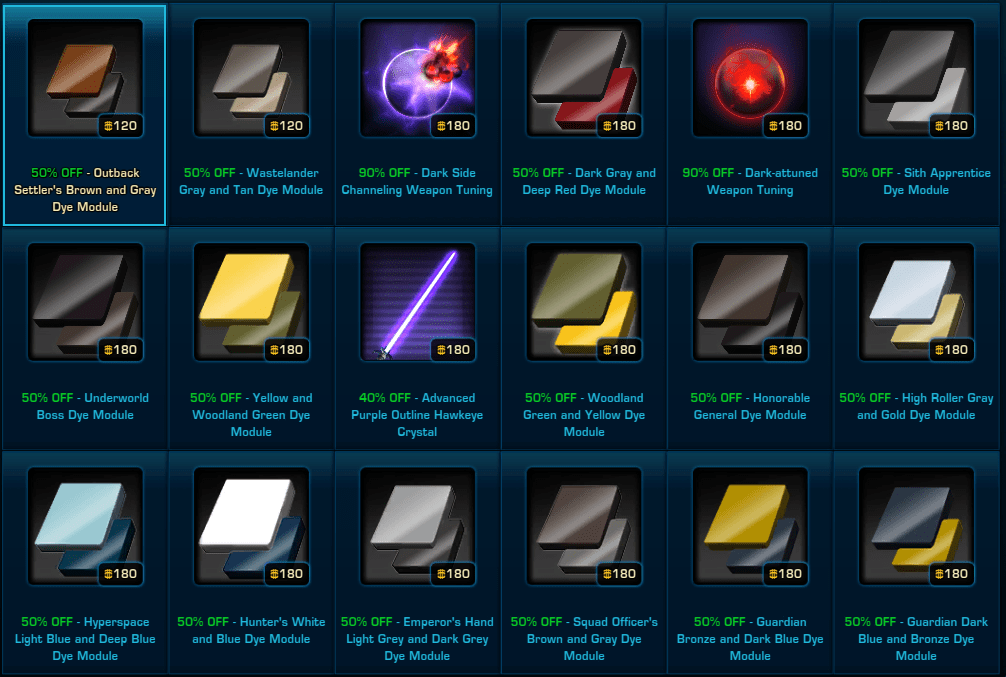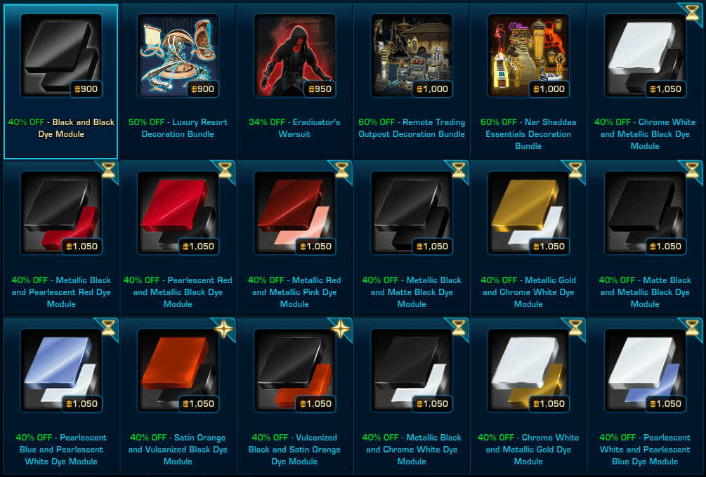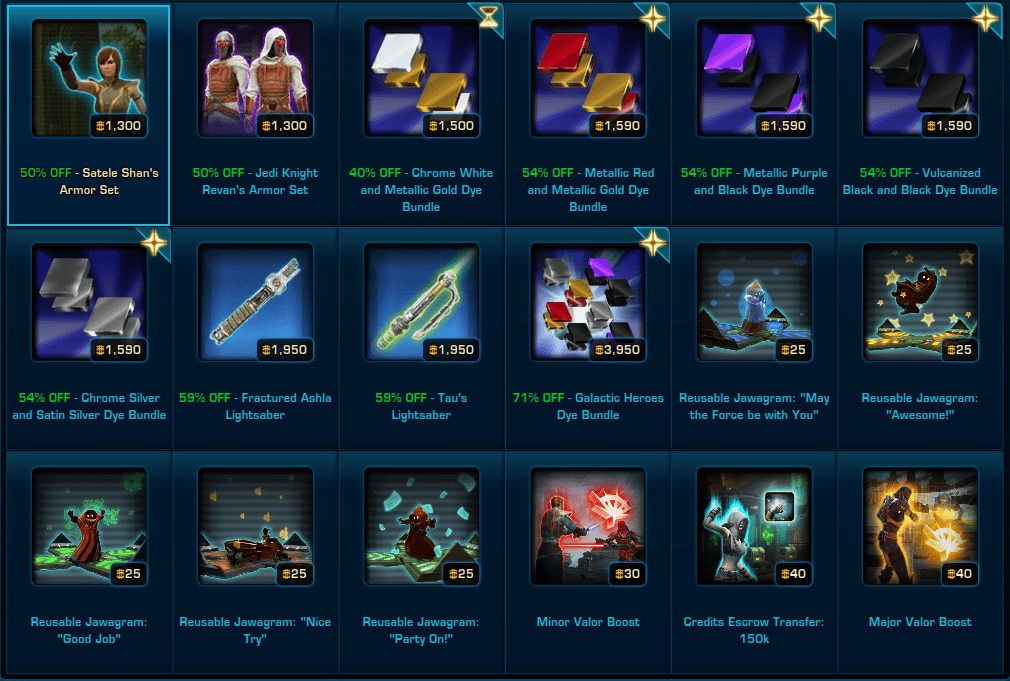 Every special available in the SWTOR Sale on the Cartel Market in game on November 2025.