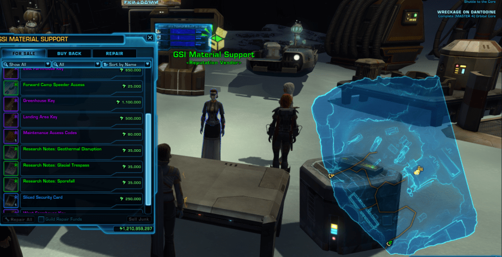 Unlike other strongholds, the Dantooine Stronghold’s rooms can only be unlocked via purchasing access keys from the Dantooine Reputation Vendor, which requires increasing your Reputation level with the Dantooine GSI Reputation track.