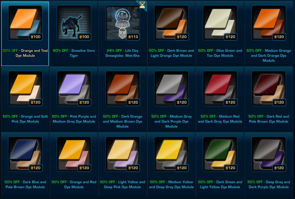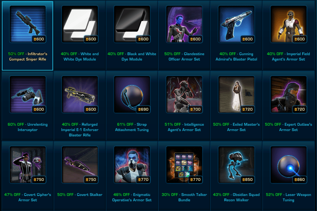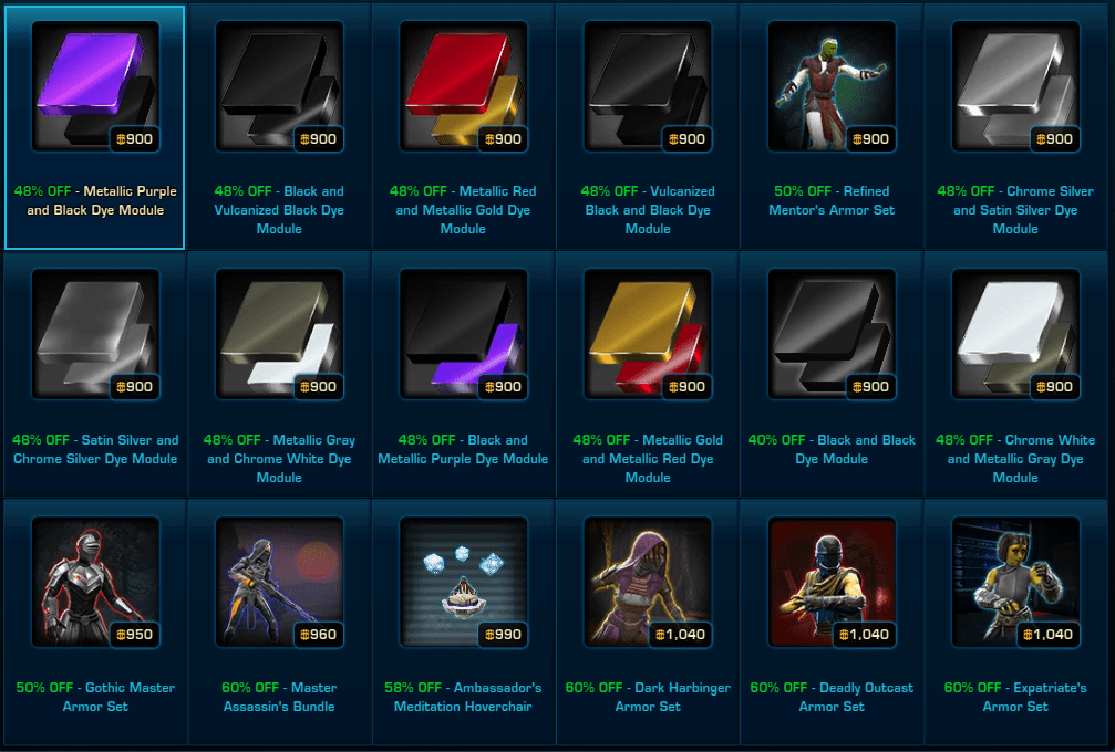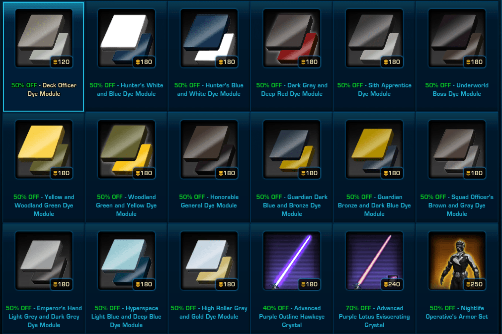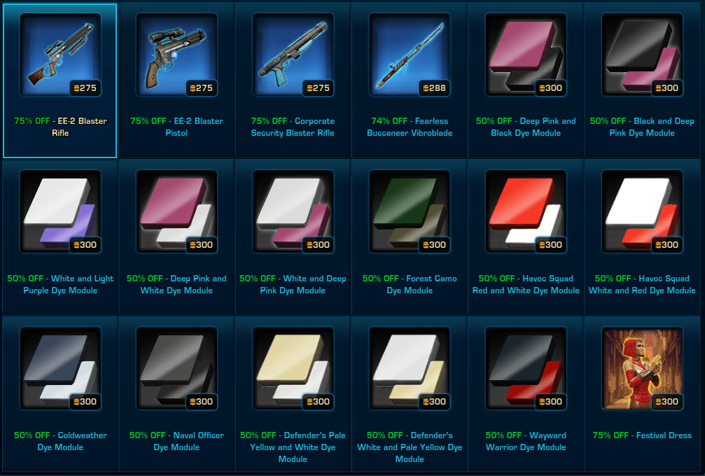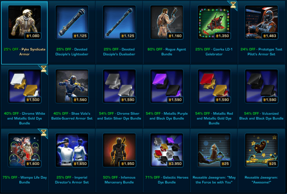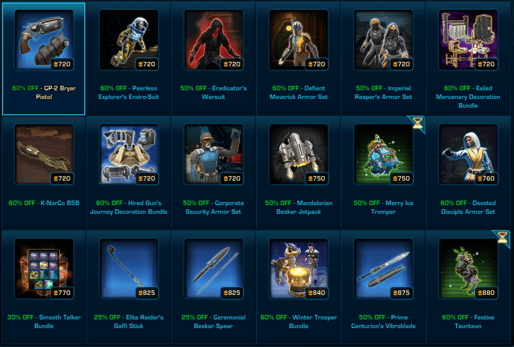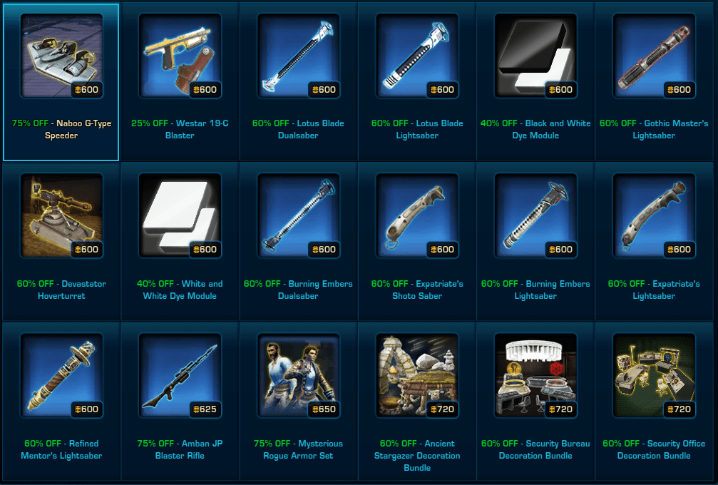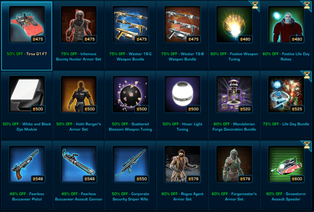 Every special available in the SWTOR Sale on the Cartel Market in game on December 2025.