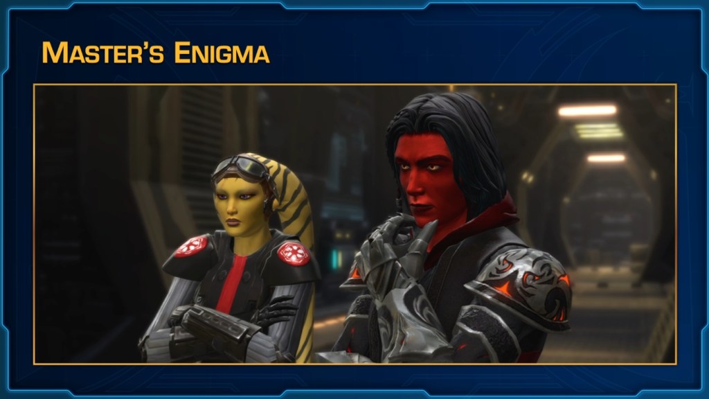 In order to play Master’s Enigma story on release, players must have completed the Galactic Threads story-quest from the Legacy of the Sith expansion.