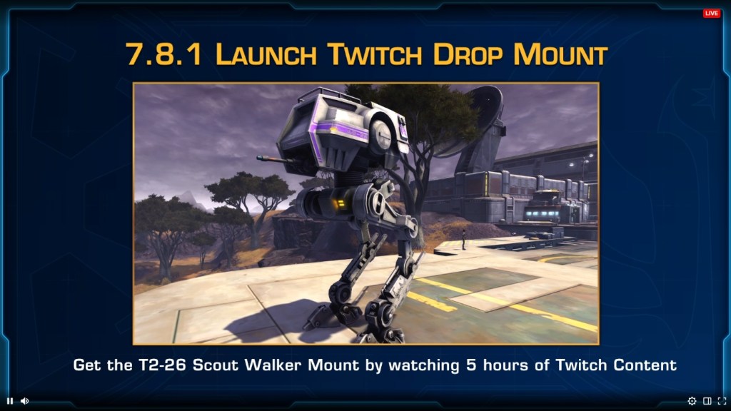 Players for the launch of 7.8.1 can watch 5 hours of livestreams to unlock the T2-26 Walker mount
