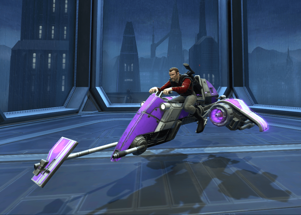 The Orlean Voidstream is a swoop style Mount given away in Star Wars the Old Republic as a Reward granted to all players that have watched 4 total hours of Star Wars the Old Republic streams on Twitch.TV